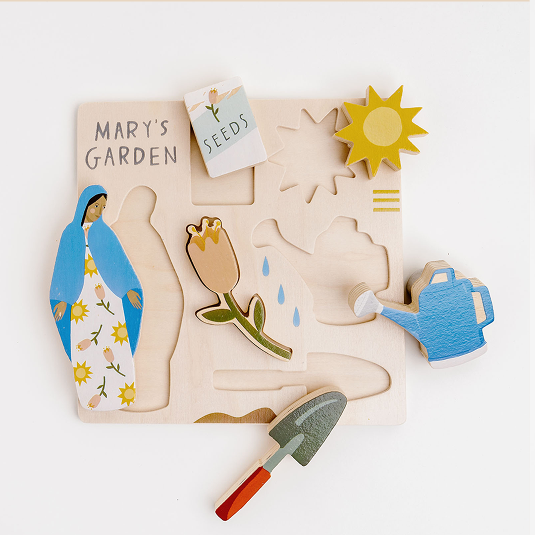 The puzzles make great baptism, birthday and holiday gifts. You can choose from three unique designs: Mary's Garden, Joyful Noise and Good Shepherd.