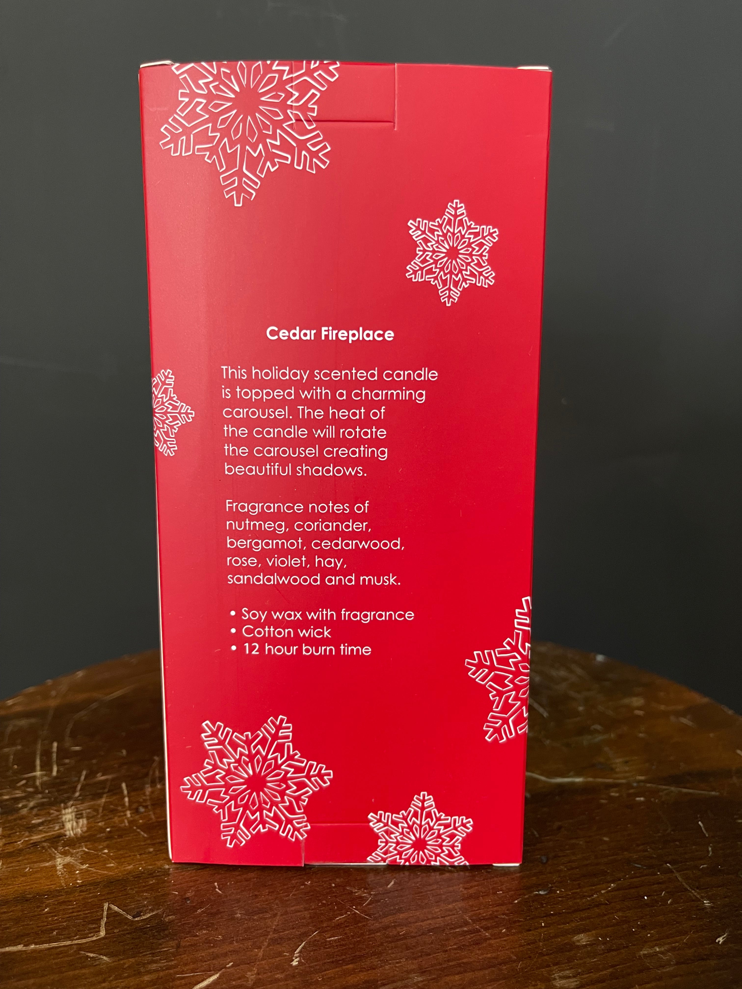 Cedar Fireplace Snowflake Carousel Candle - is backordered and will ship as soon as it is back in stock.