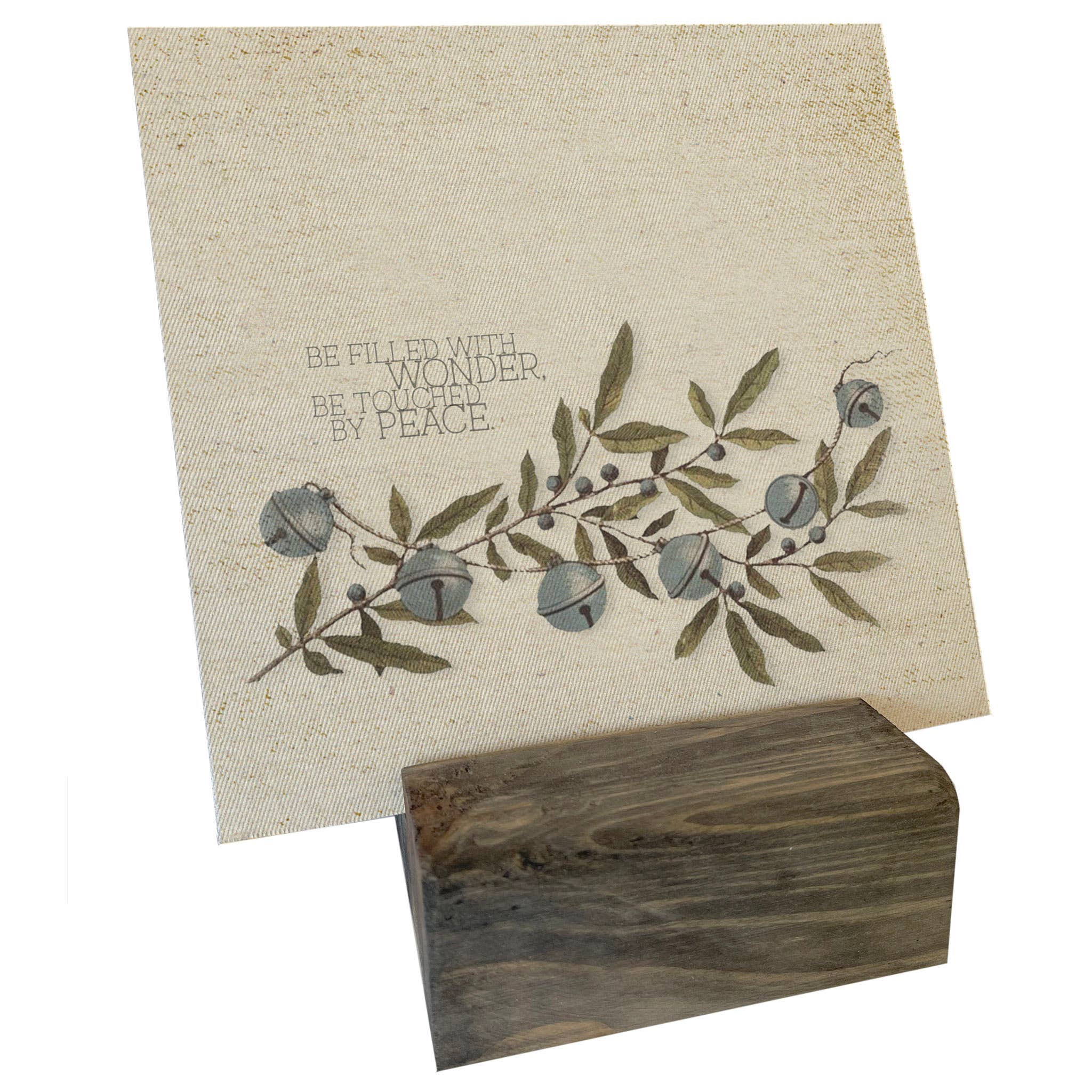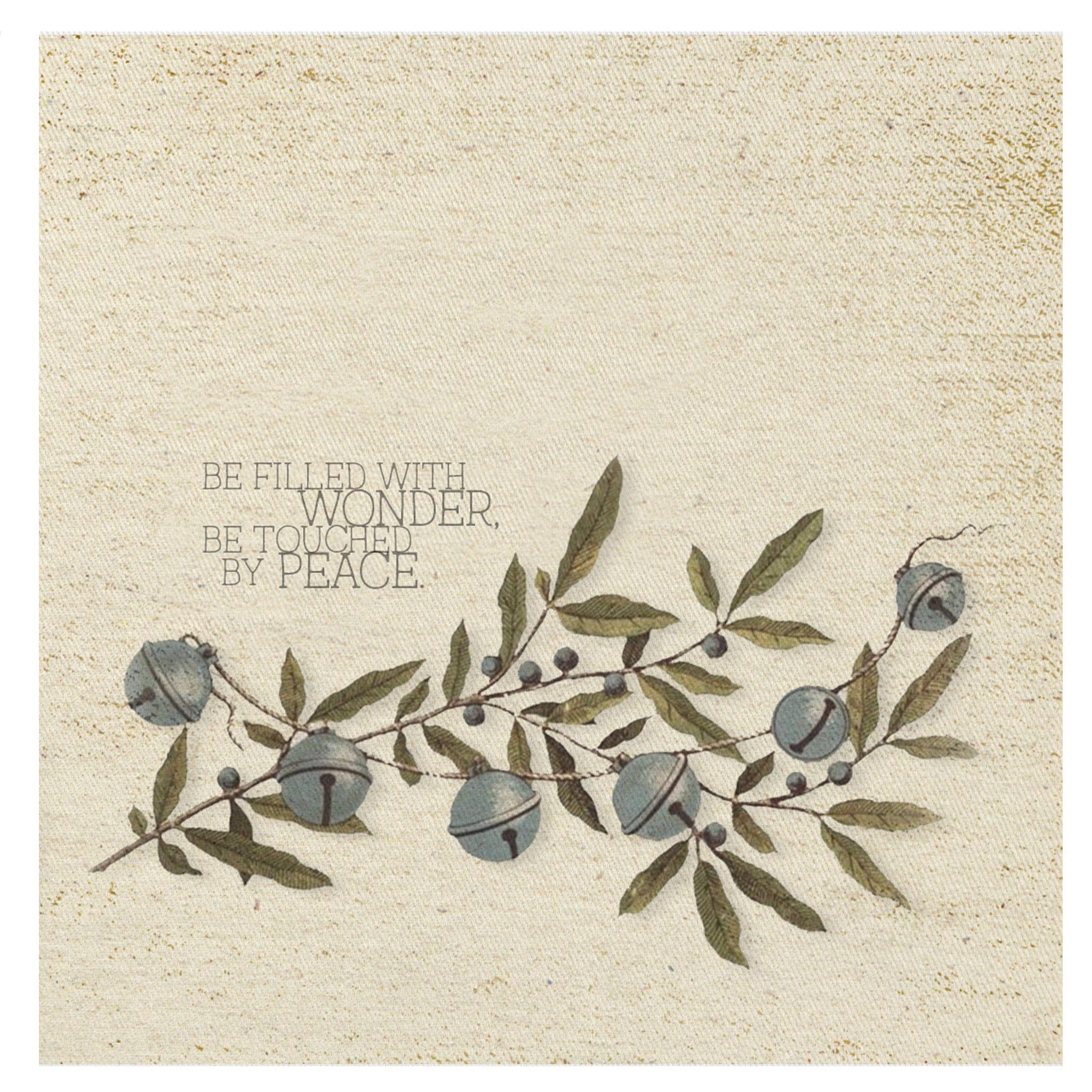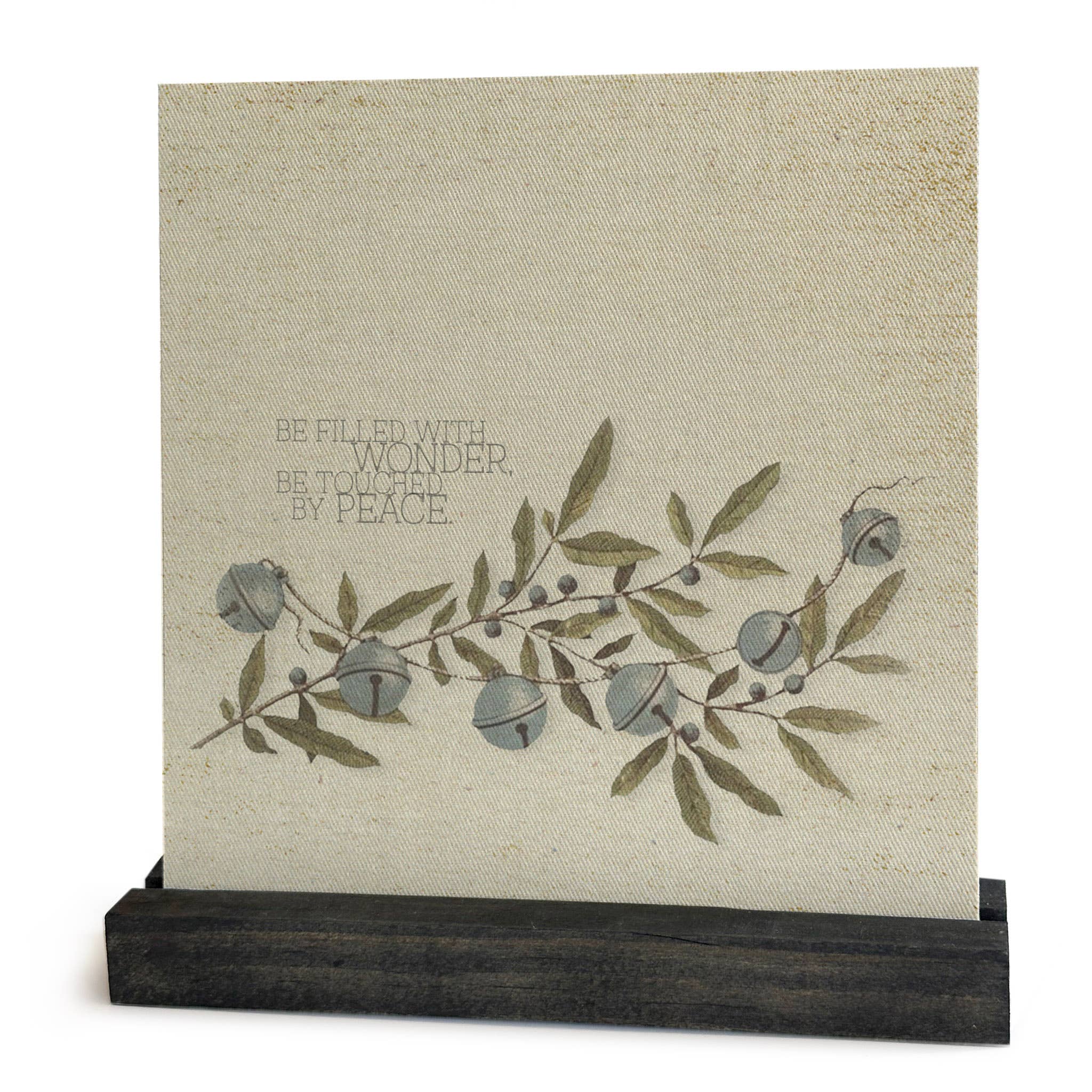 Be filled with wonder. Be touched by peace. Vintage bell holiday art. Christmas mini canvas.