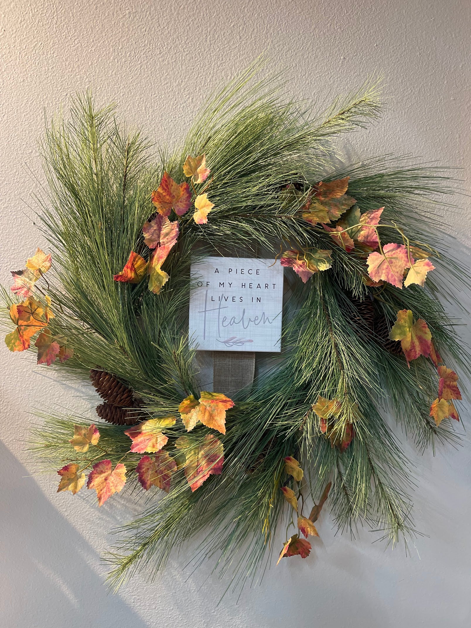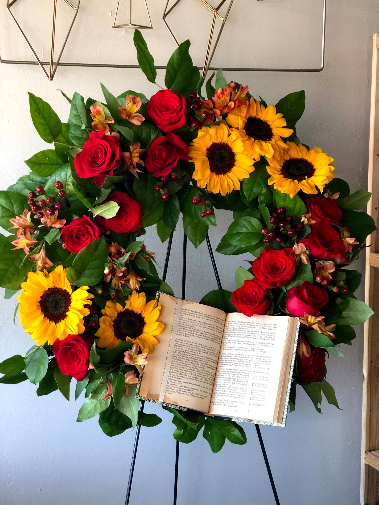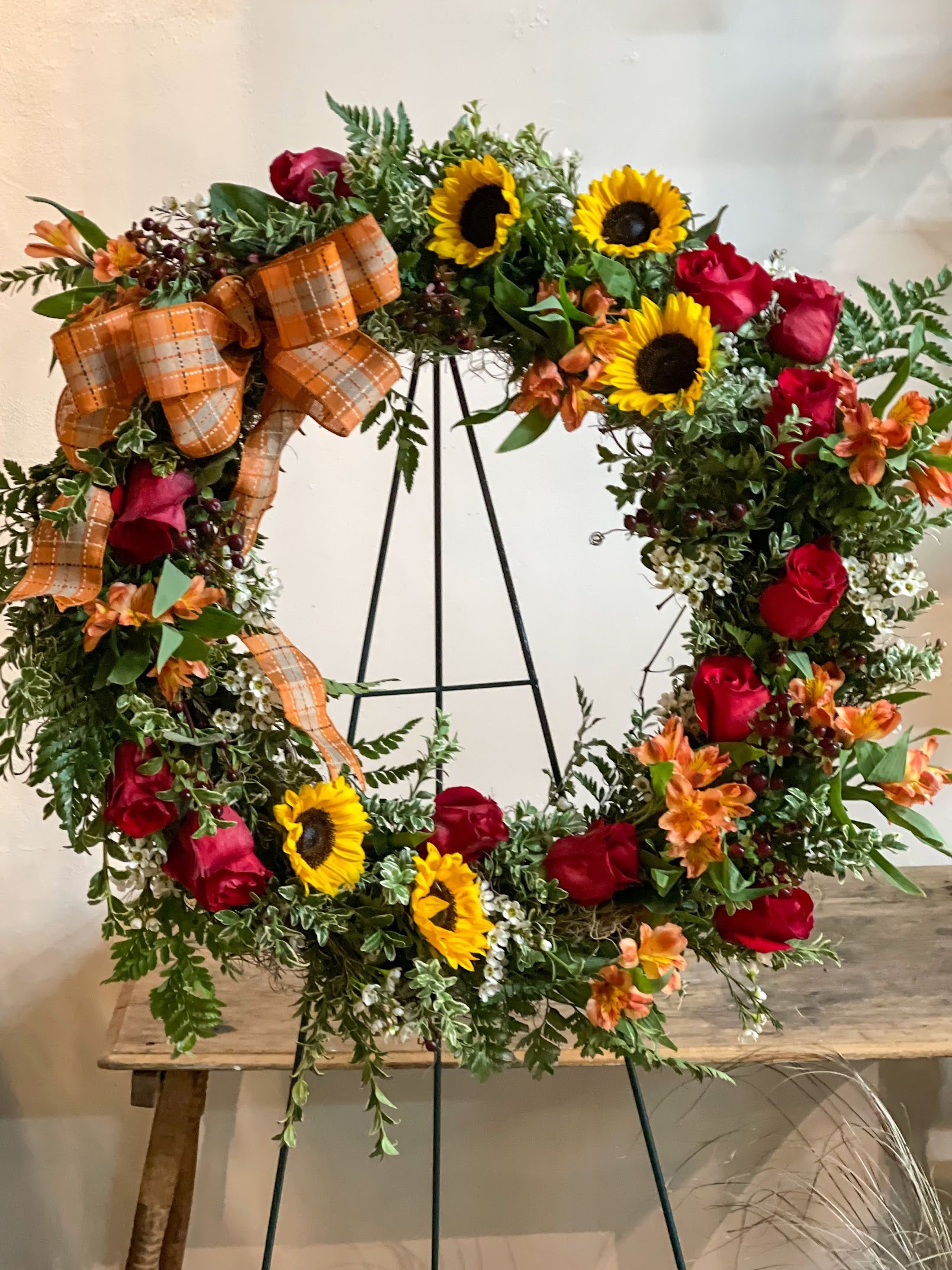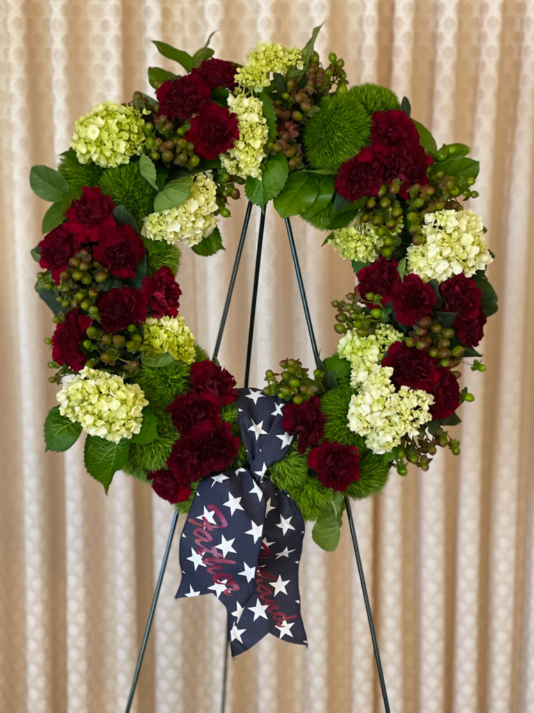 Choose between Full Floral Wreath, Rustic Barb Wire Wreath, or Forever Permeant Botanical wreath.