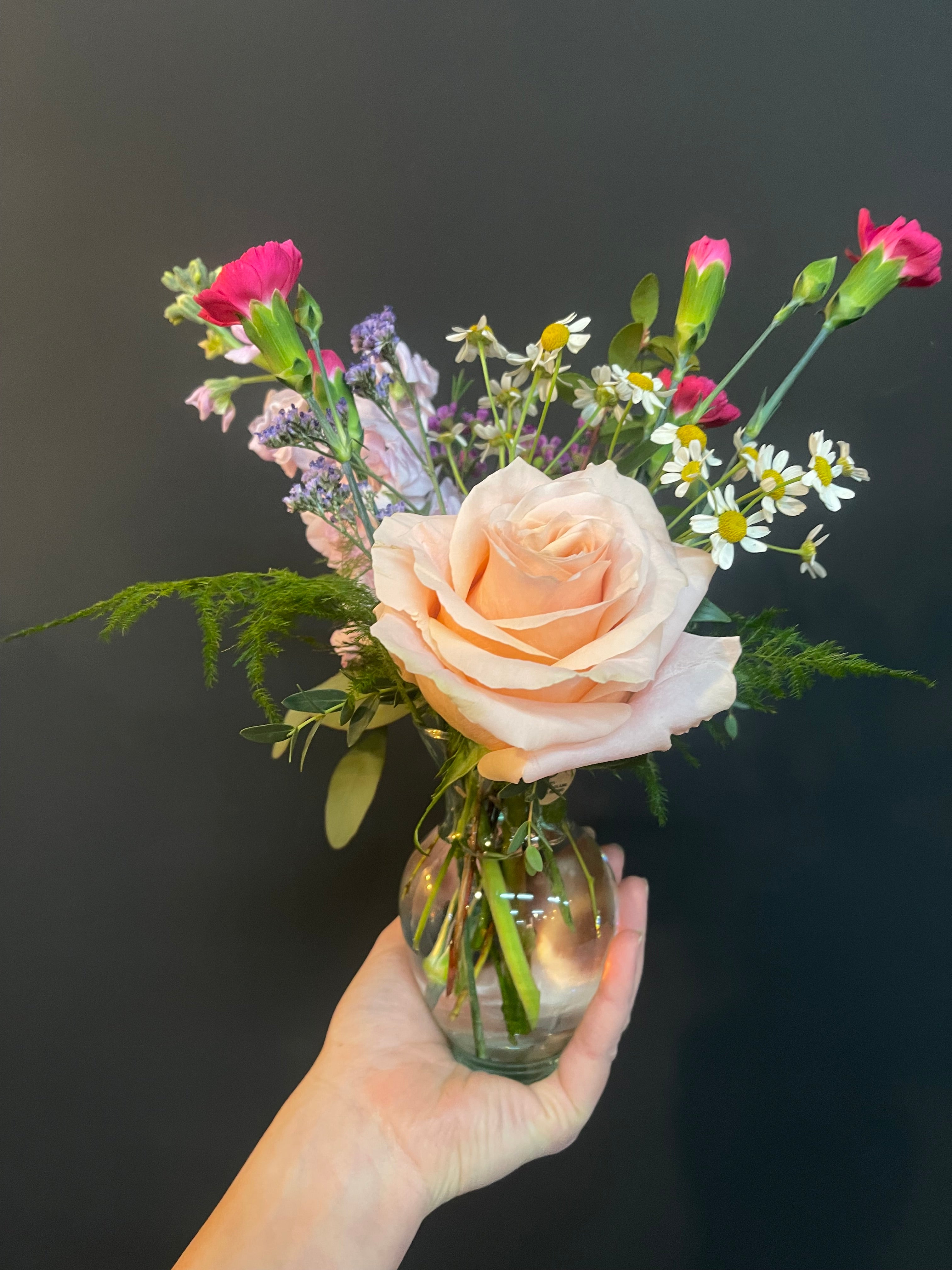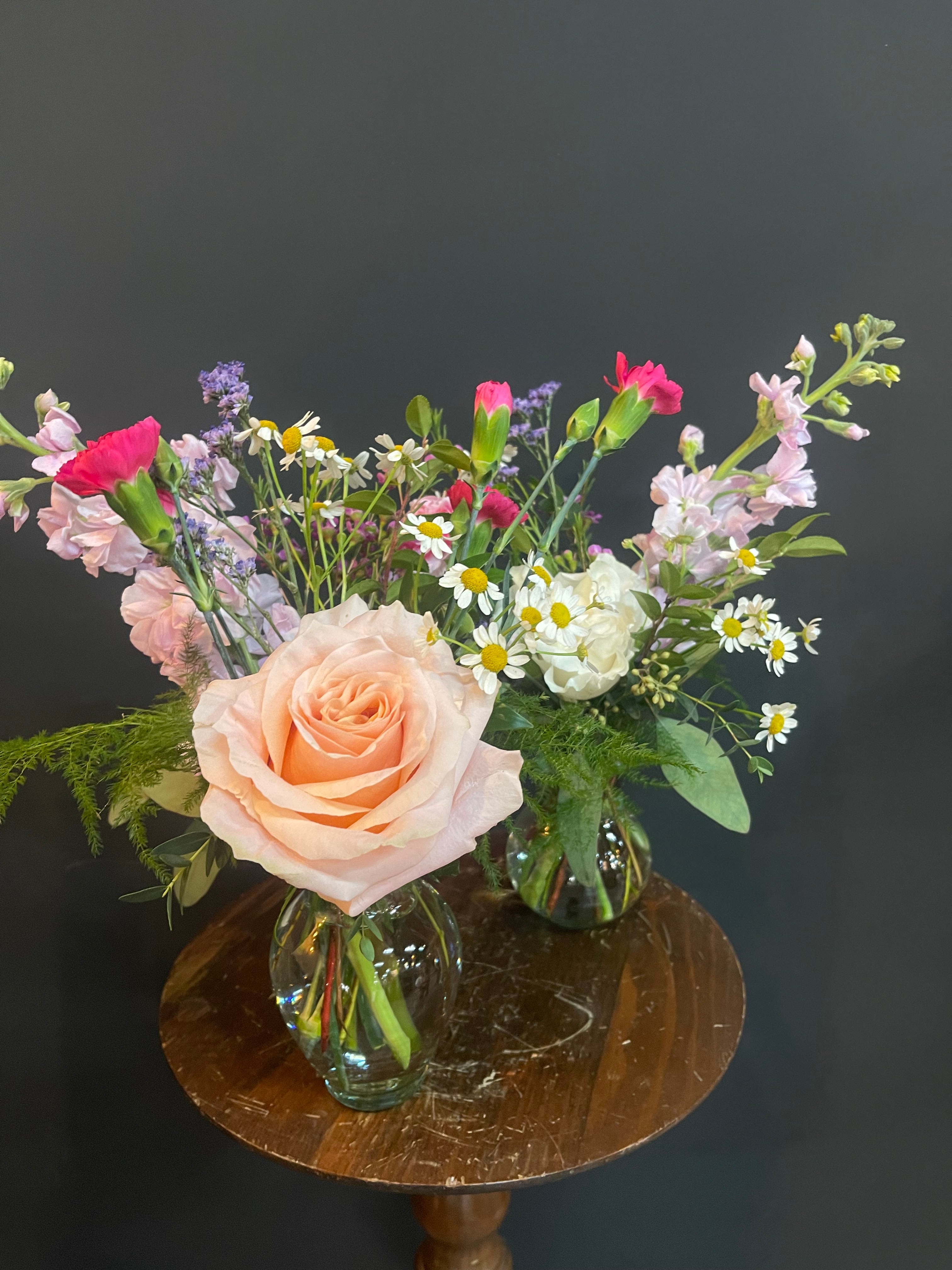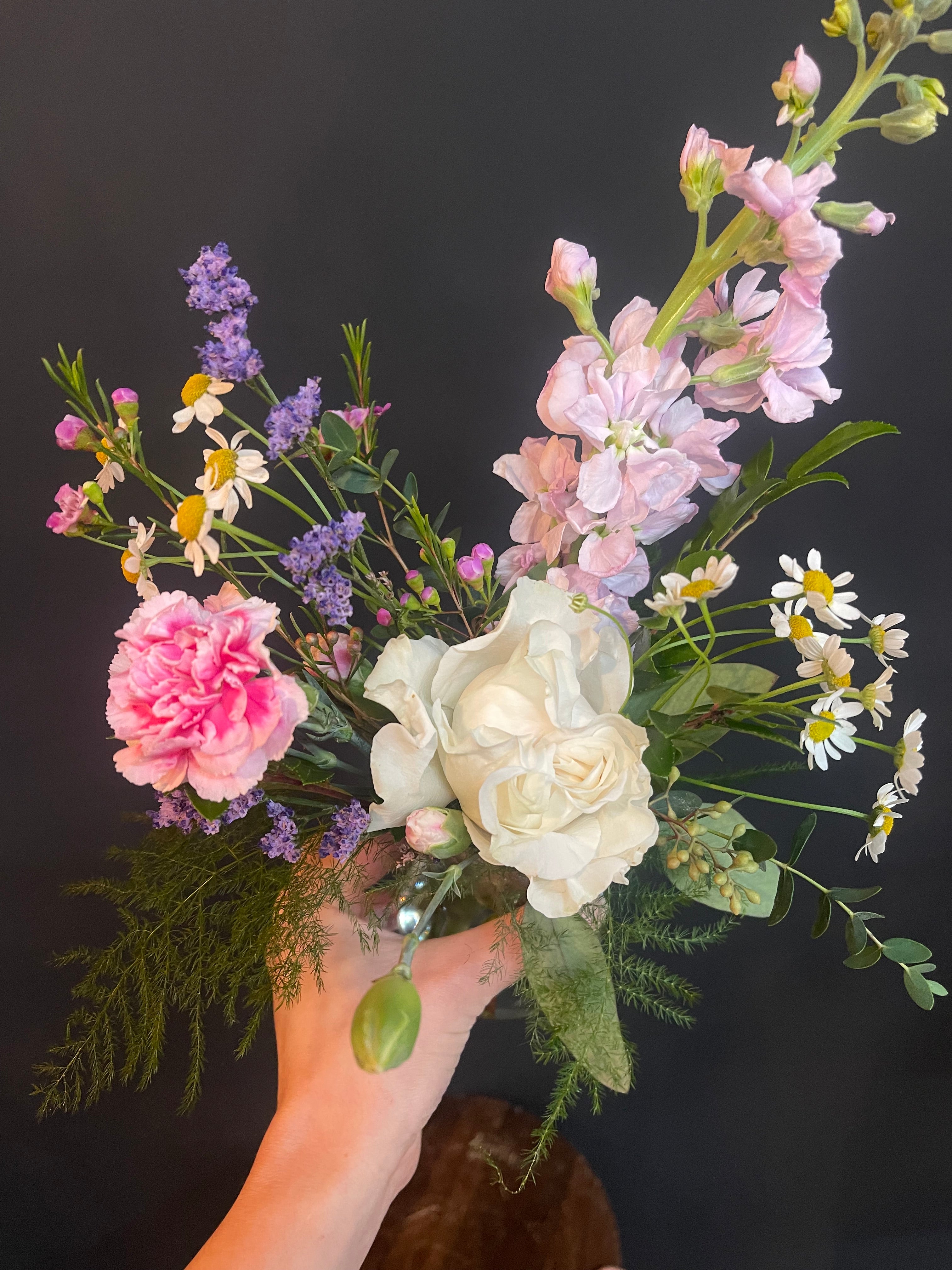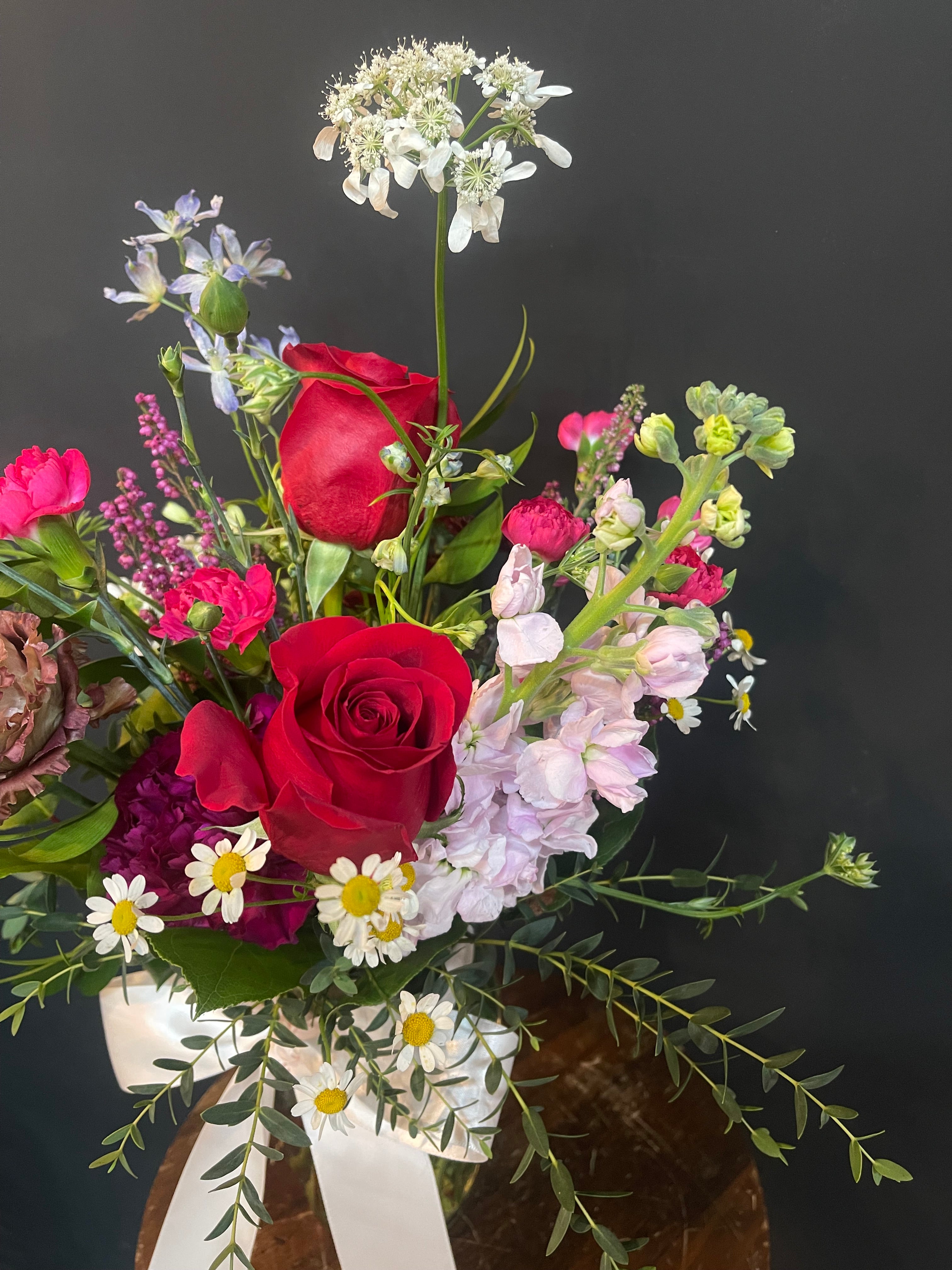 Each bouquet is unique and flowers will vary in colors and flowers used showcasing a variety of wildflower like flowers.