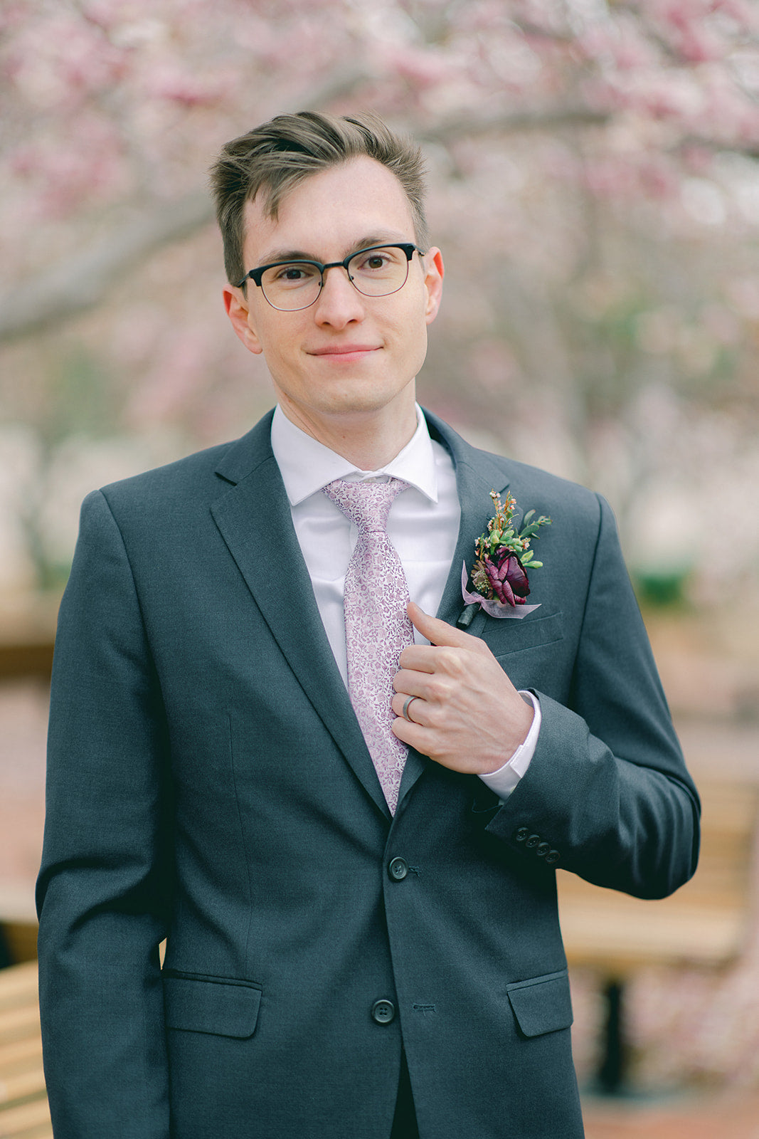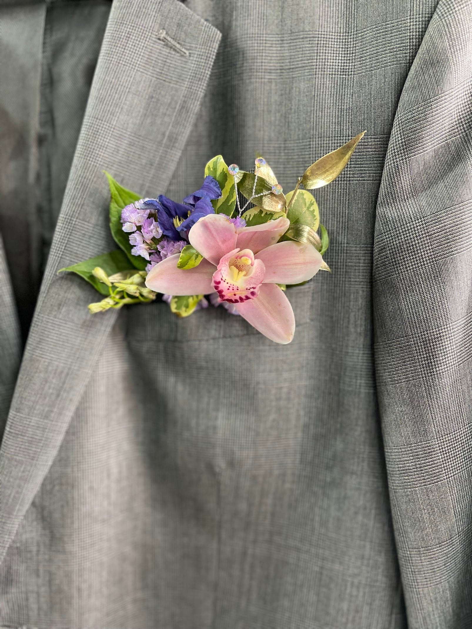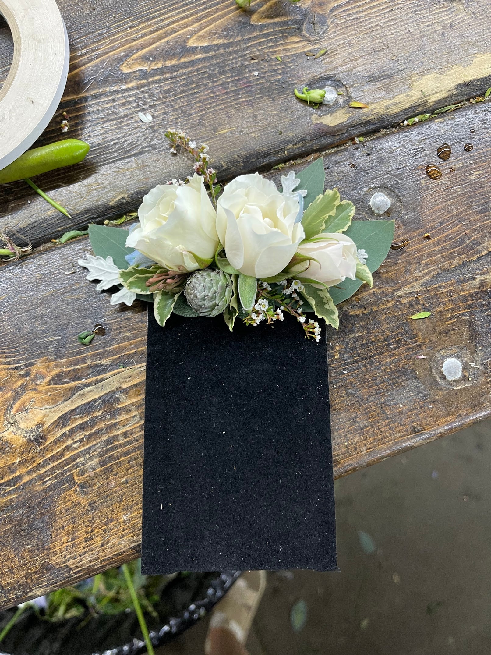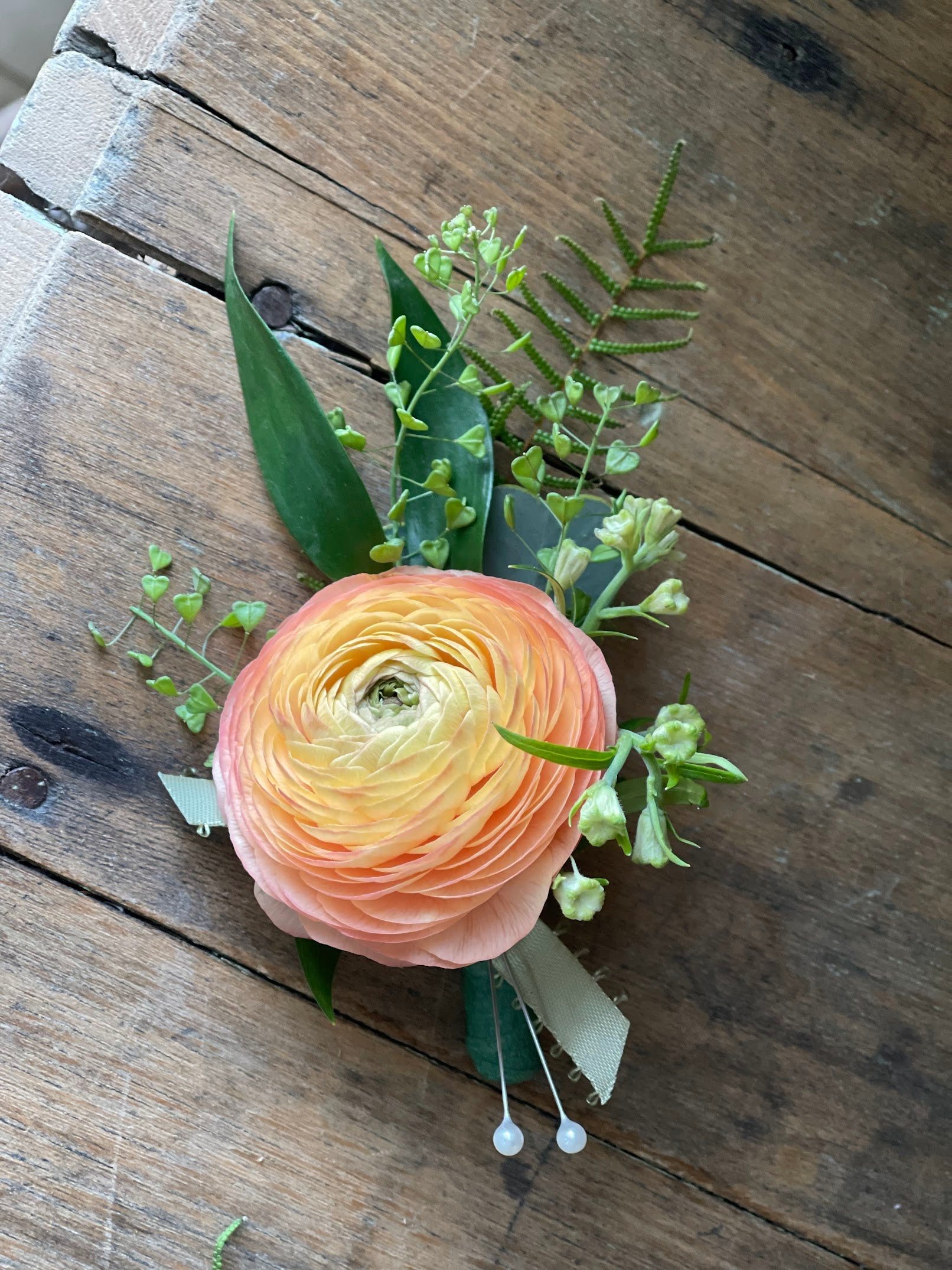 The online a-la-carte bridal boutonnieres available will contain the same ingredients as the bridal bouquet. Choose between Pocket Square or Pin-on.