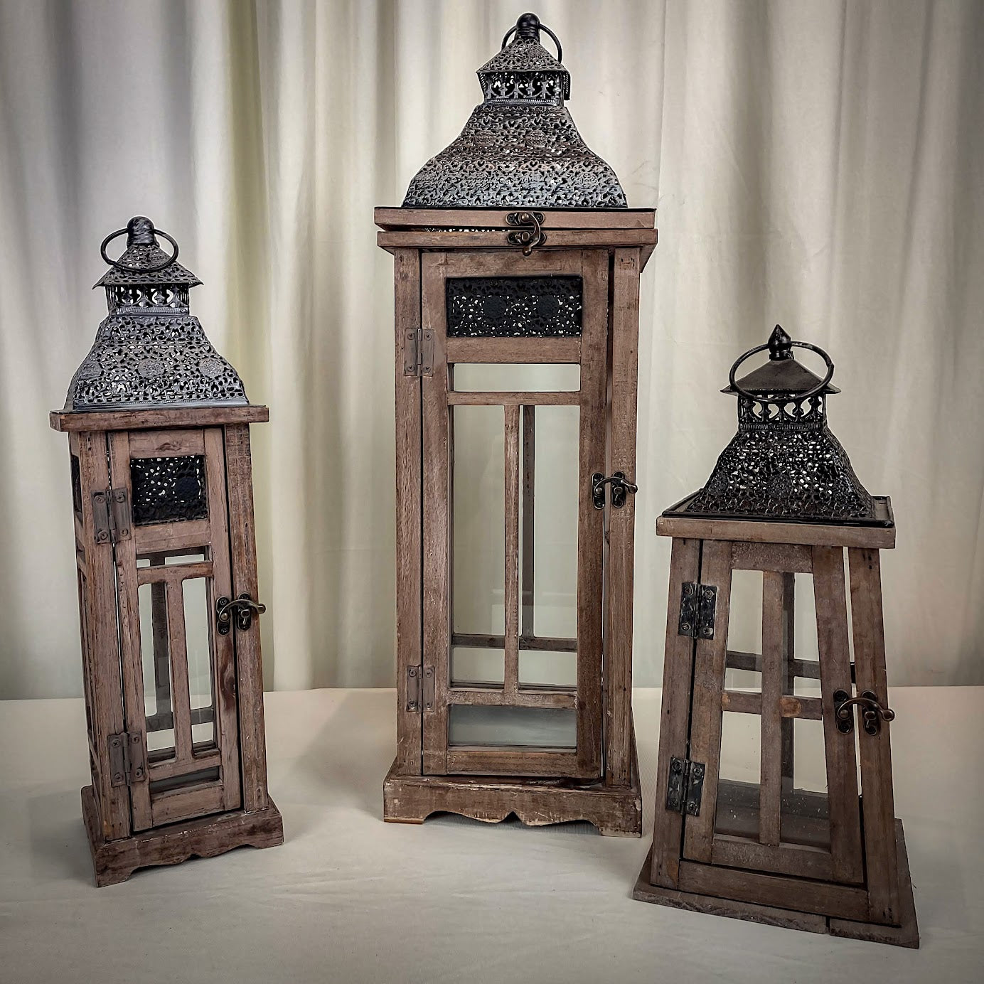 Set of 3 wooden lanterns for $45.