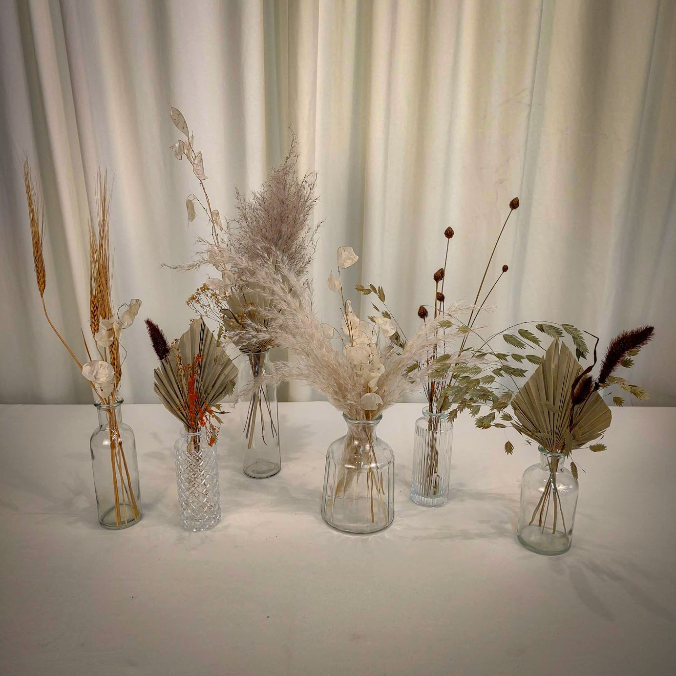 Assorted bud vases in varying designs, varying in height of 3-8". Add desired quantity to cart. If you would like a specific design please indicate that in the comments section on the checkout page. If you have questions about a wedding or event, please reach out via our Instagram, Facebook page or call our shop at 1(605)853-0105
