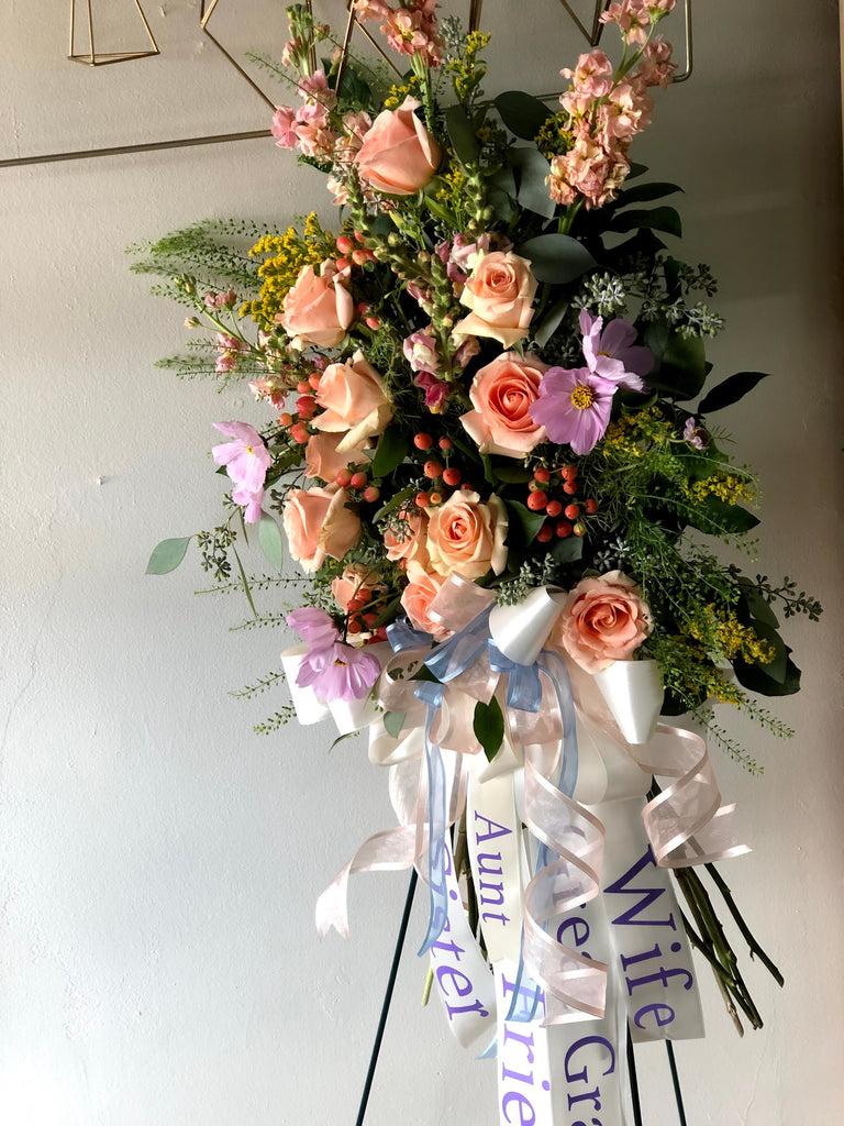 We try our best to coordinate flowers based on what the family has chosen and ensure that each arrangement will be unique. We are also glad to to do special requests, please call as soon as possible.